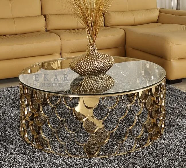 New Model Fish Scales Decoration Round Golden Coffee Table